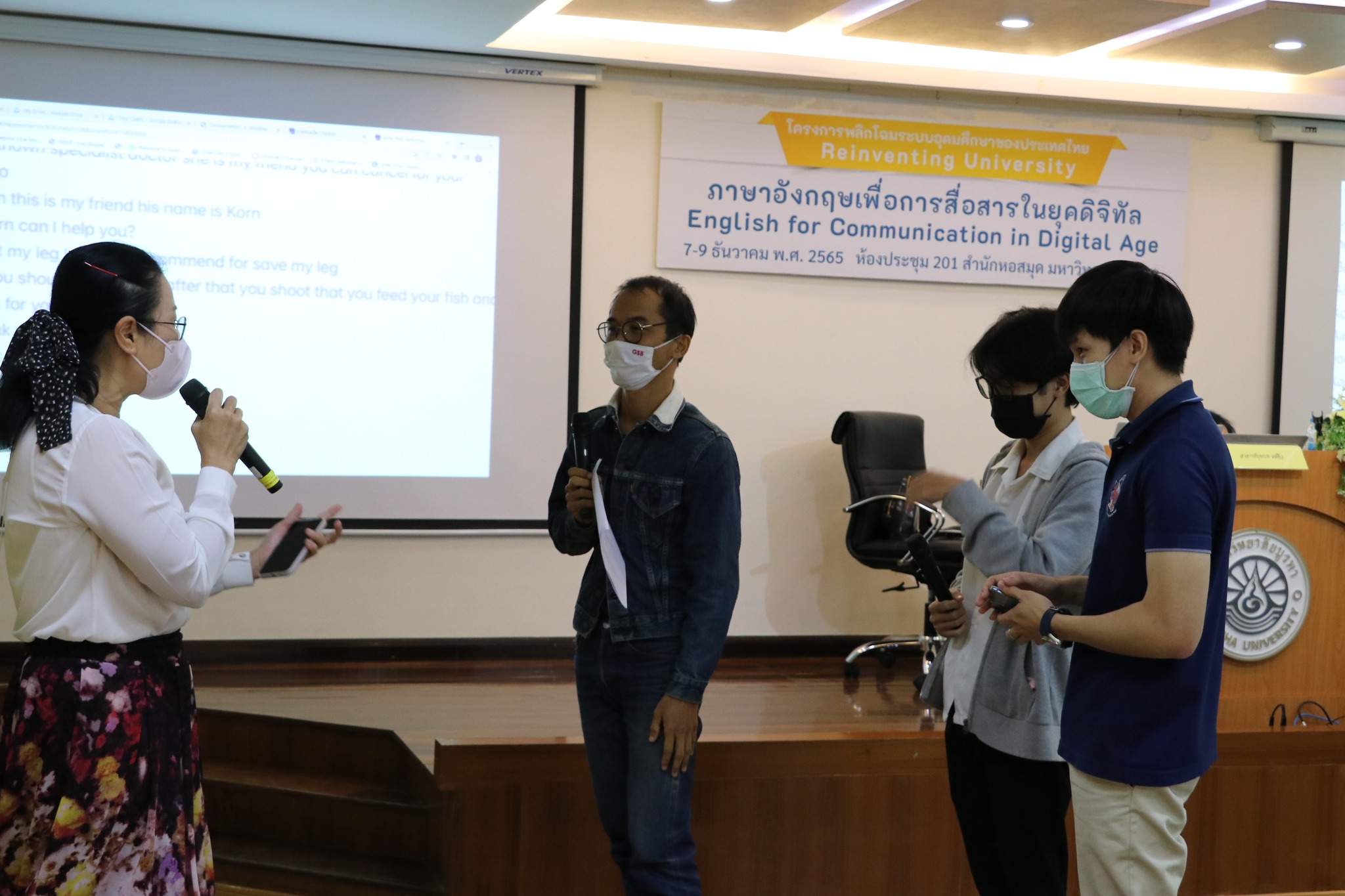 สำนักหอสมุด มหาวิทยาลัยบูรพา ได้จัดการอบรมหลักสูตรภาษาอังกฤษเพื่อการสื่อสารในยุคดิจิทัล (English for Communication in Digital Age) นำโดยอาจารย์เหมรัศมิ์ วชิรหัตถพงศ์ ผู้อำนวยการสำนักหอสมุด เป็นประธานในพิธิเปิดการอบรม เพื่อส่งเสริมผู้เรียนให้สามารถใช้เทคโนโลยีดิจิทัลพัฒนาทักษะภาษาอังกฤษทั้ง 4 ทักษะ การฟัง การพูด การอ่าน และการเขียน อย่างยั่งยืน ตลอดจนสามารถใช้ภาษาอังกฤษในการทำงานได้อย่างมีประสิทธิภาพในระดับสากล โดยวิทยากรอาจารย์บุษบง แซ่จิว อาจารย์รพีพรรณ คุณประยูรสวัสดิ์ และอาจารย์คริสต์มาส ชูเกษร จากสถาบันภาษา มหาวิทยาลัยบูรพา เมื่อวันที่ 7 ธันวาคม 2565 ณ ห้องประชุม 201 ชั้น 2 สำนักหอสมุด