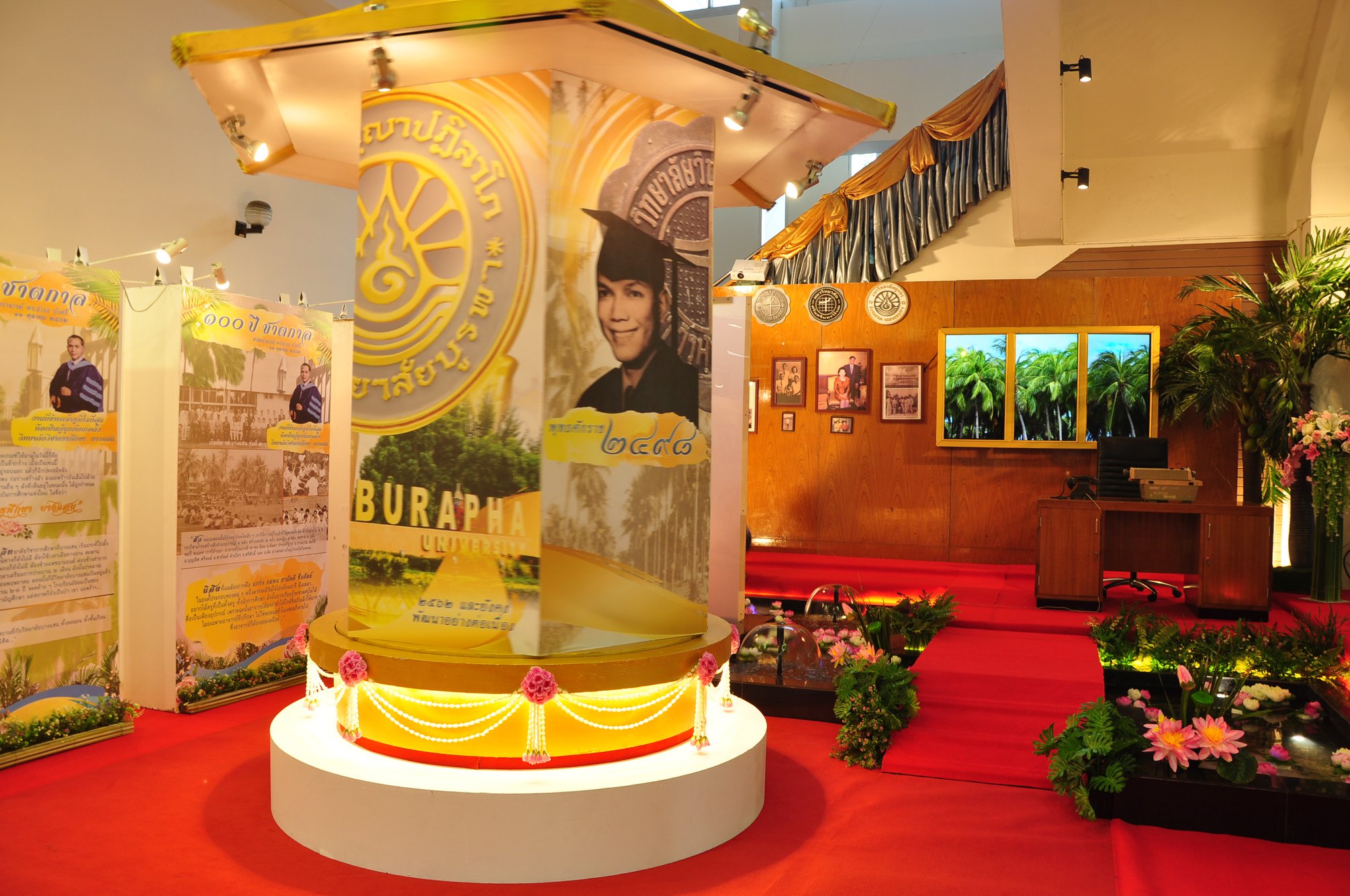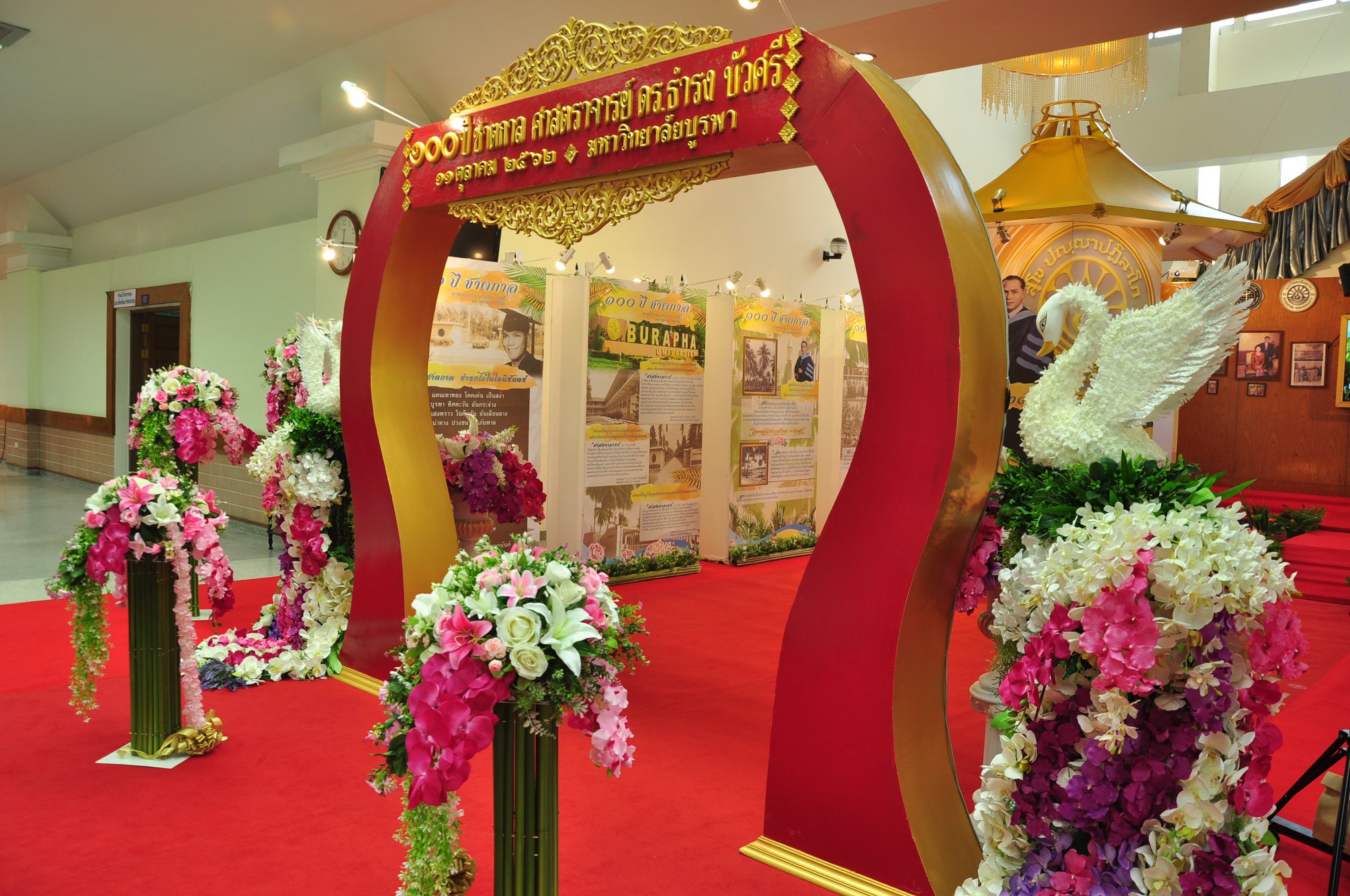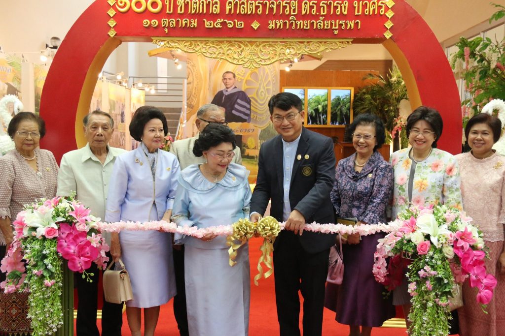 รองศาสตราจารย์ ดร.วัชรินทร์ กาสลัก ผู้รักษาการแทนอธิการบดีมหาวิทยาลัยบูรพา เป็นประธานในพิธีเปิดนิทรรศการ ๑๐๐ ปี ชาตกาล ศาสตราจารย์ ดร.ธำรง บัวศรี โดยมีคณะผู้บริหาร คณาจารย์ บุคลากร นิสิตและศิษย์เก่า เข้าร่วมพิธีเปิดและชมนิทรรศการเป็นจำนวนมาก เมื่อวันที่ 11 ตุลาคม 2562 ณ หอประชุม ธำรง บัวศรี มหาวิทยาลัยบูรพา