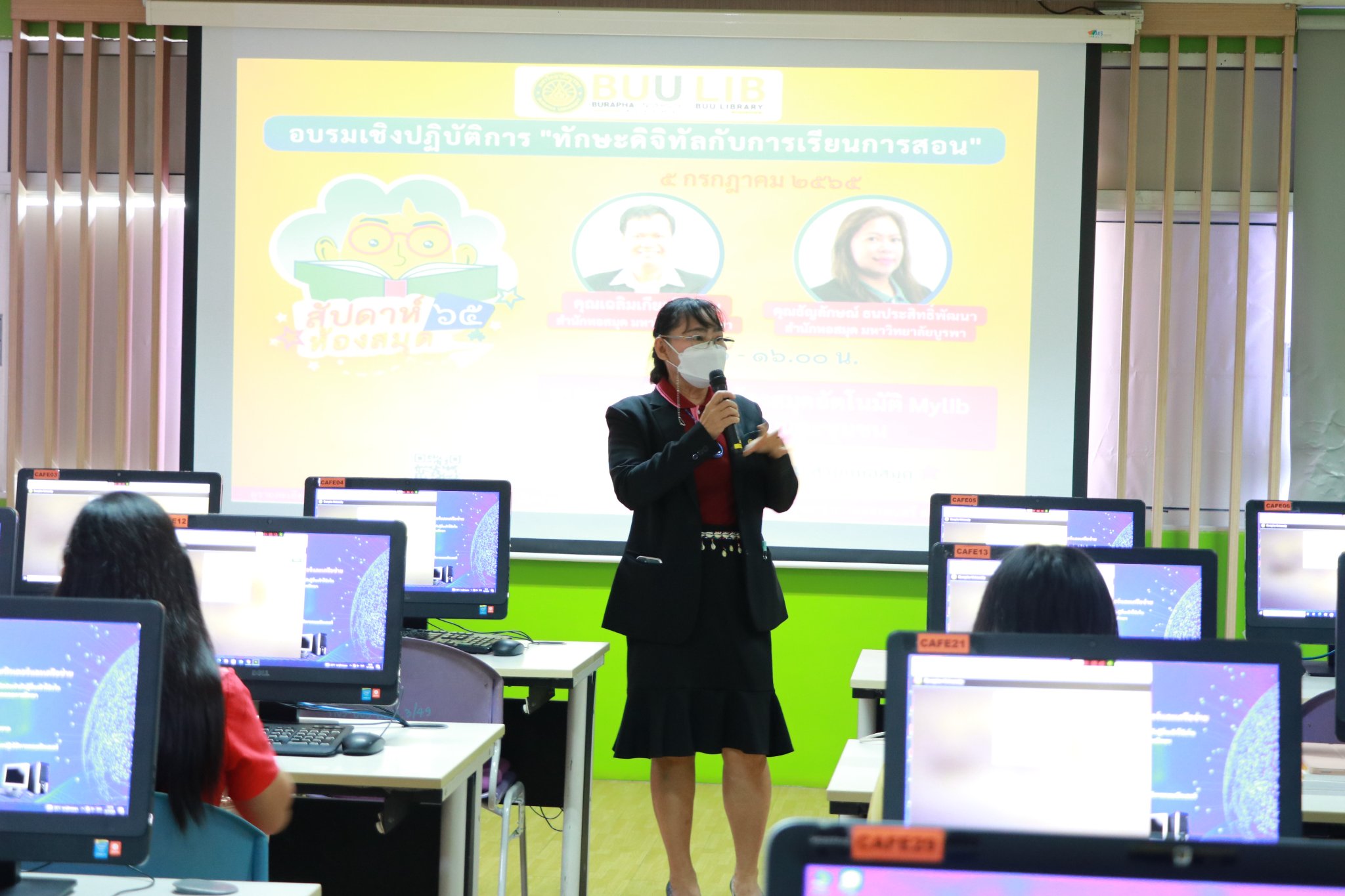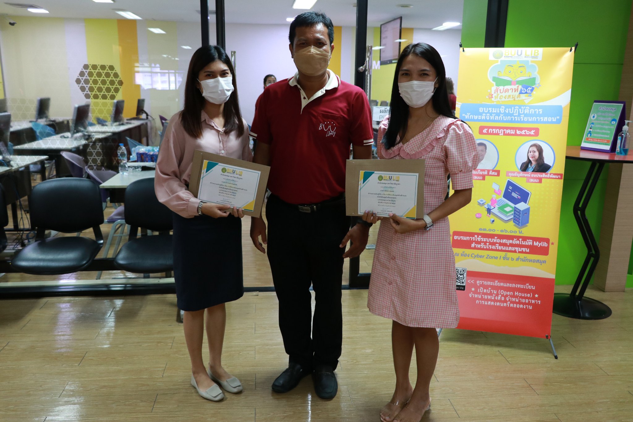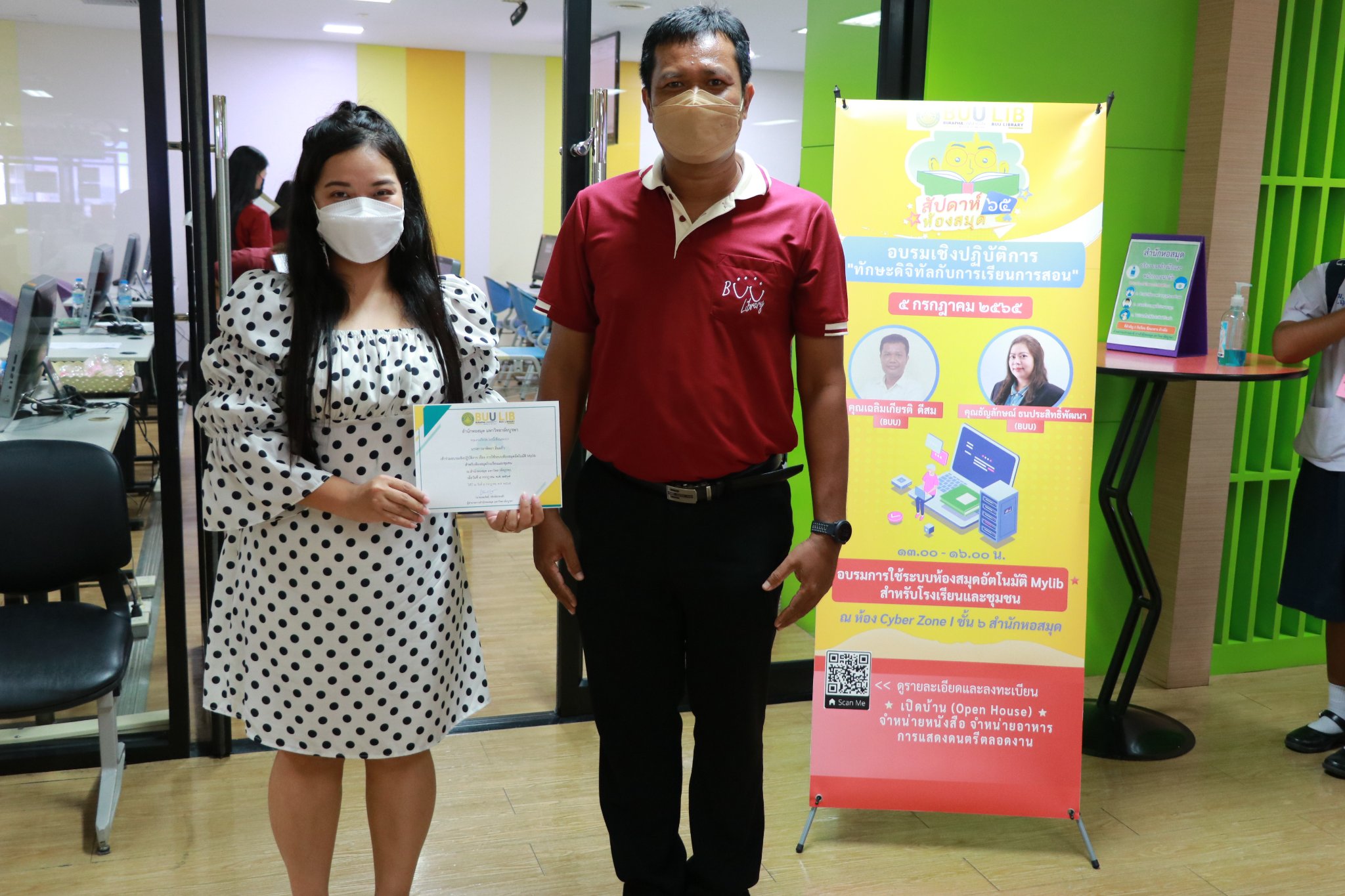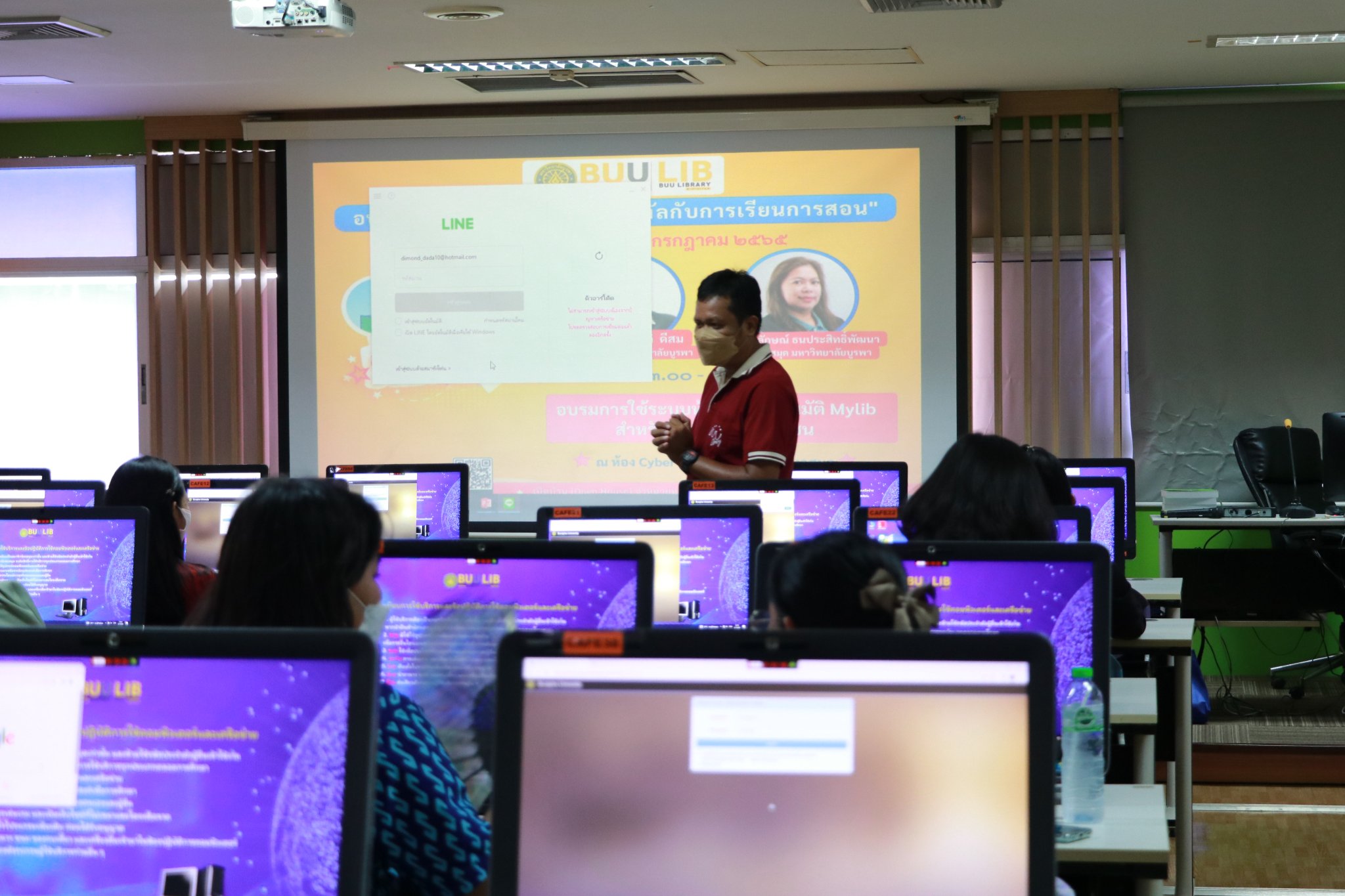 สำนักหอสมุด มหาวิทยาลัยบูรพา ได้จัดการอบรมเชิงปฏิบัติการ เรื่อง การใช้ระบบห้องสมุดอัตโนมัติ Mylib สำหรับห้องสมุดโรงเรียนและชุมชน ภายใต้งานสัปดาห์ห้องสมุด ประจำปี 2565 โดยนายเฉลิมเกียรติ ดีสม นักวิชาการคอมพิวเตอร์ชำนาญการ และนางสาวธัญลักษณ์ ธนประสิทธิ์พัฒนา บรรณารักษ์ชำนาญการ สำนักหอสมุด มหาวิทยาลัยบูรพา เมื่อวันที่ 5 กรกฎาคม 2565 เวลา 13.00 – 16.00 น. ณ ห้อง Cyber Zone I ชั้น 6 สำนักหอสมุด