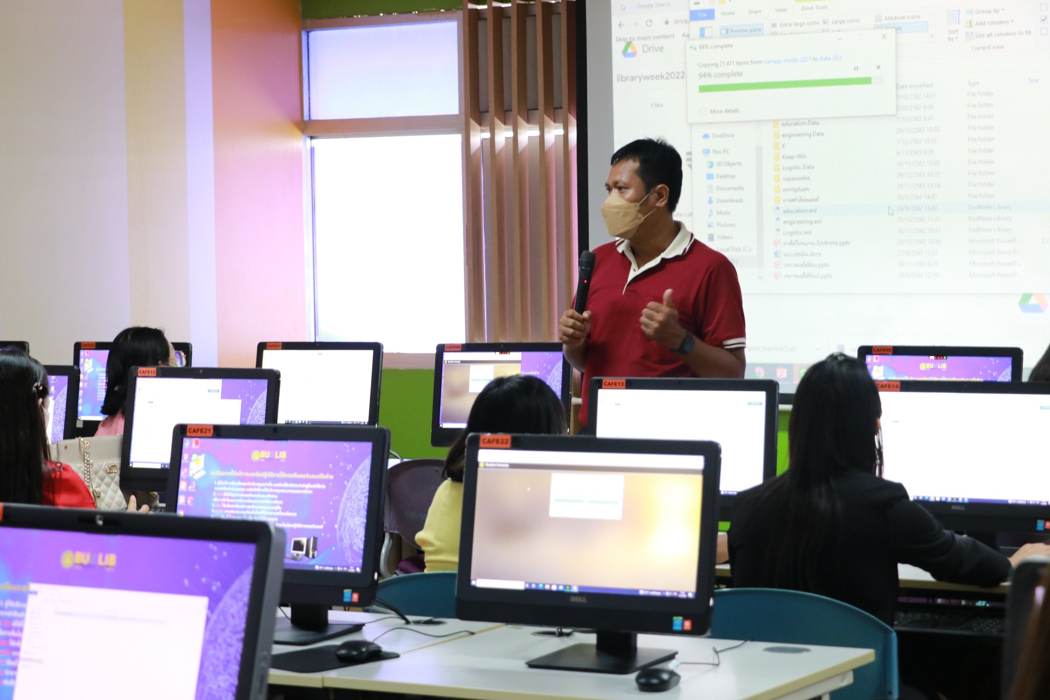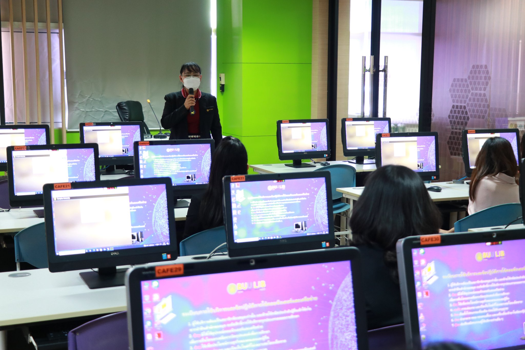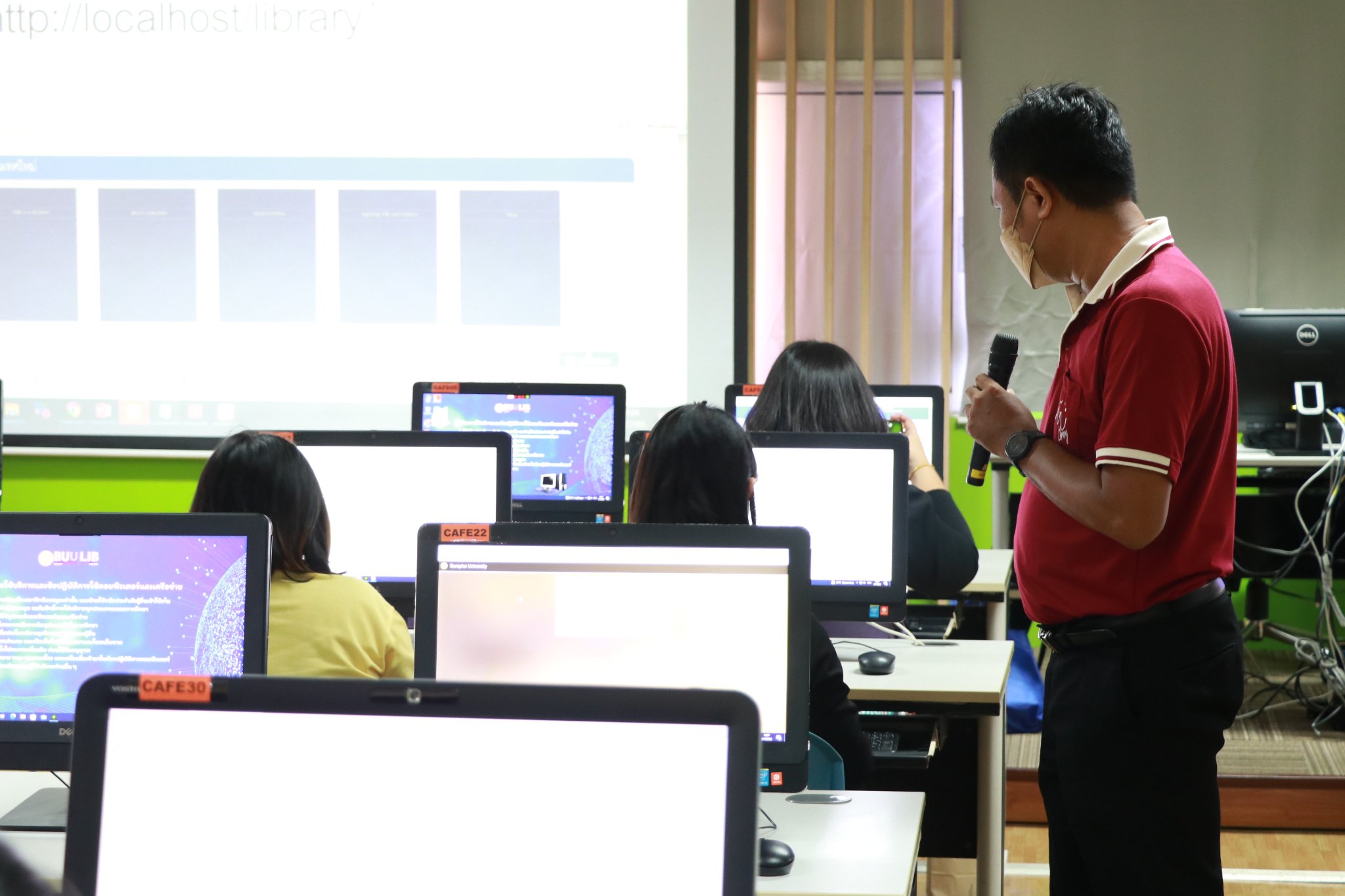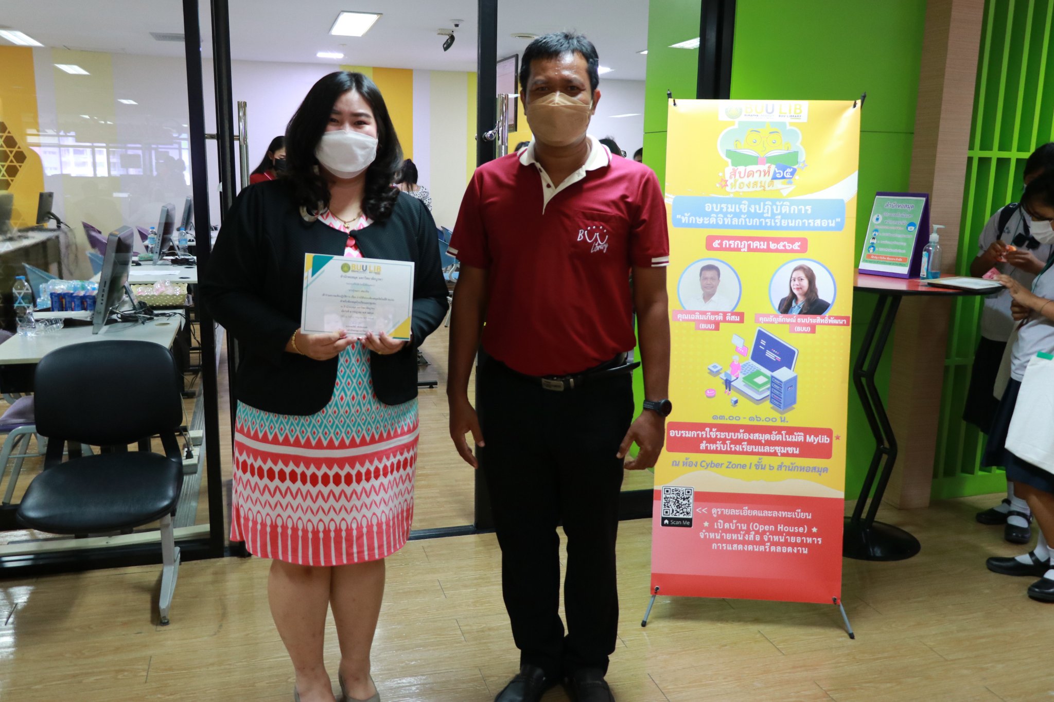 สำนักหอสมุด มหาวิทยาลัยบูรพา ได้จัดการอบรมเชิงปฏิบัติการ เรื่อง การใช้ระบบห้องสมุดอัตโนมัติ Mylib สำหรับห้องสมุดโรงเรียนและชุมชน ภายใต้งานสัปดาห์ห้องสมุด ประจำปี 2565 โดยนายเฉลิมเกียรติ ดีสม นักวิชาการคอมพิวเตอร์ชำนาญการ และนางสาวธัญลักษณ์ ธนประสิทธิ์พัฒนา บรรณารักษ์ชำนาญการ สำนักหอสมุด มหาวิทยาลัยบูรพา เมื่อวันที่ 5 กรกฎาคม 2565 เวลา 13.00 – 16.00 น. ณ ห้อง Cyber Zone I ชั้น 6 สำนักหอสมุด