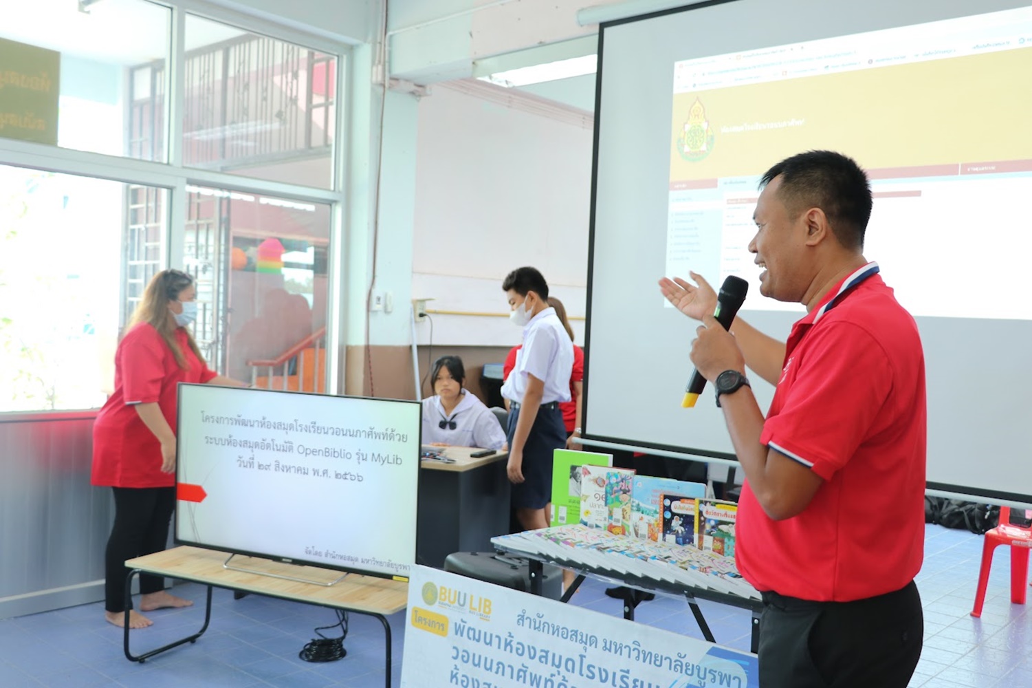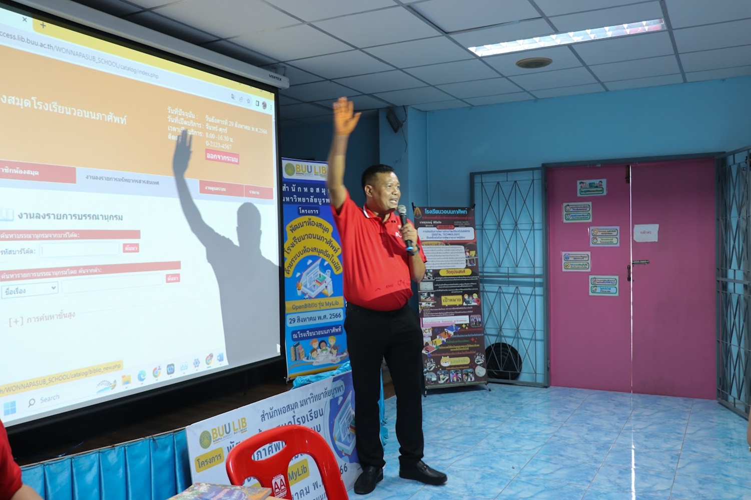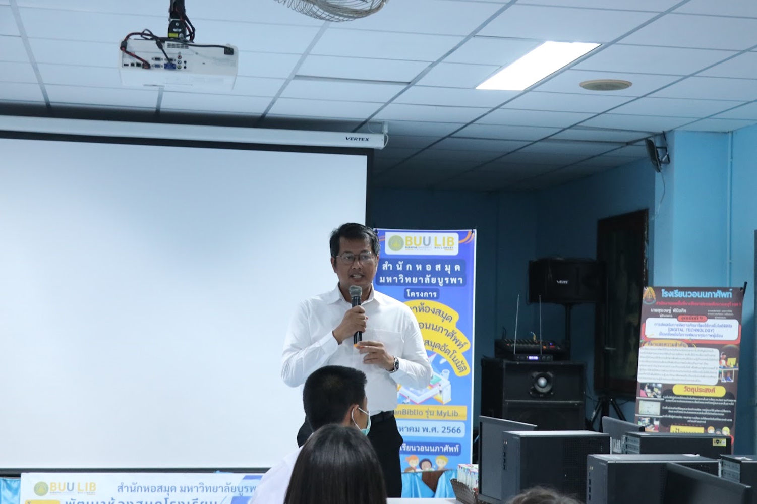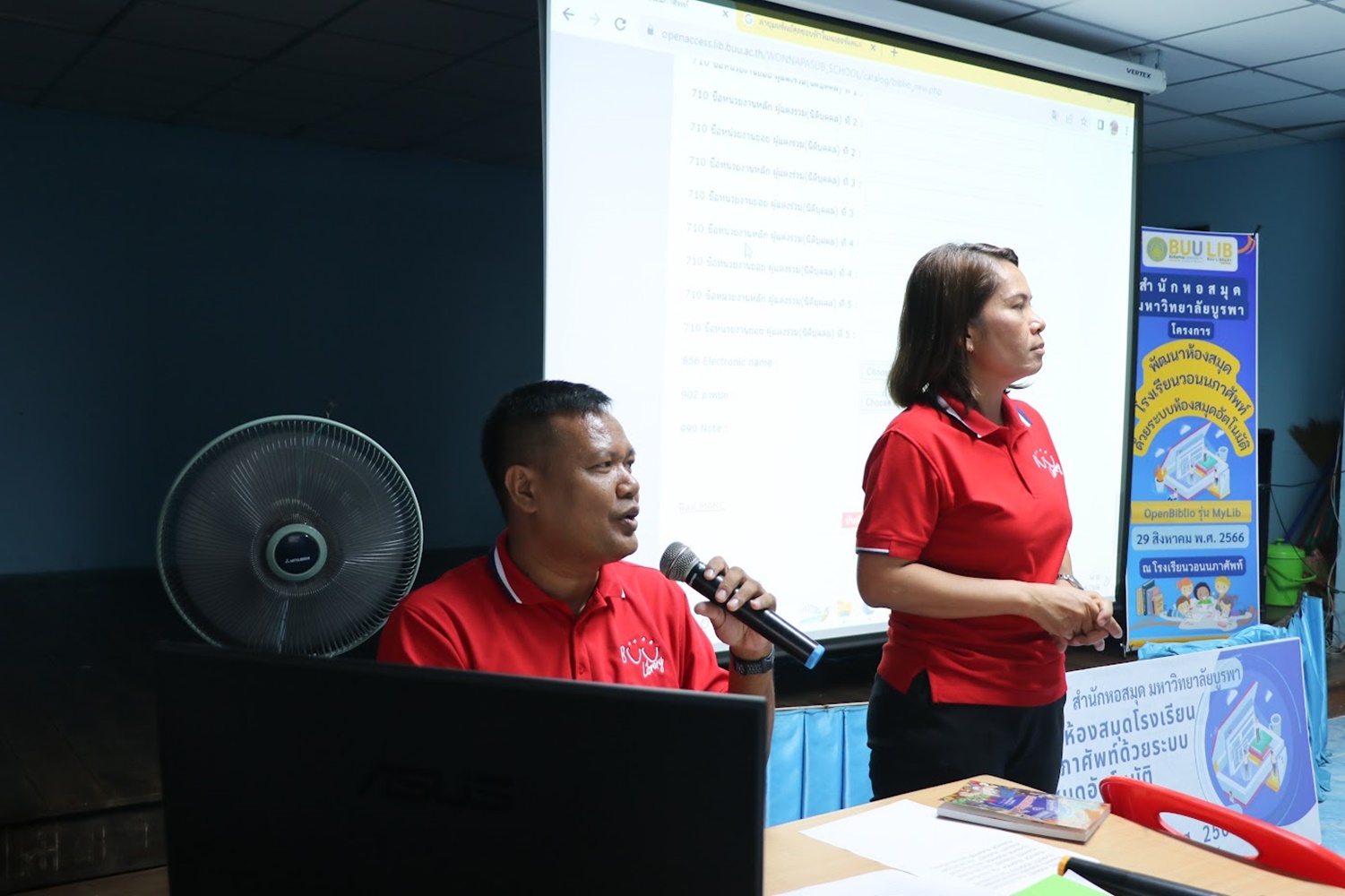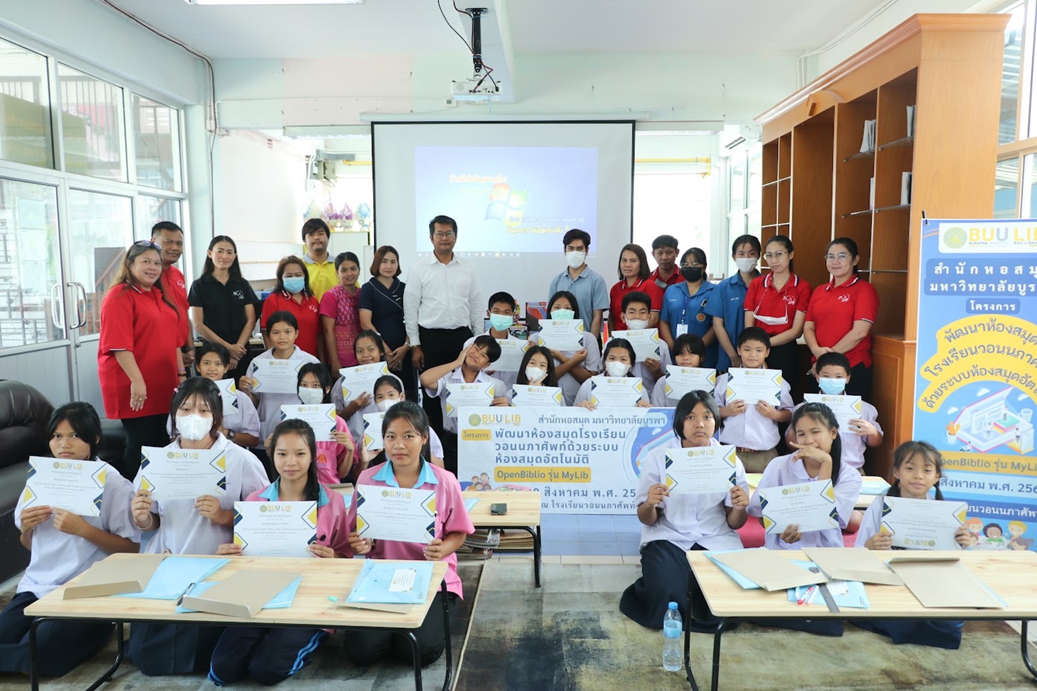 สำนักหอสมุด มหาวิทยาลัยบูรพา นำโดยอาจารย์เหมรัศมิ์ วชิรหัตถพงศ์ ผู้อำนวยการสำนักหอสมุด เป็นประธานกล่าวเปิดโครงการพัฒนาห้องสมุดโรงเรียนวอนนภาศัพท์ด้วยระบบห้องสมุดอัตโนมัติ OpenBiblio รุ่น MyLib เพื่อให้ผู้เข้าอบรมมีความรู้ความเข้าใจเกี่ยวกับการจัดการห้องสมุดโรงเรียน ระบบห้องสมุดอัตโนมัติ OpenBiblio รุ่น MyLib การลงรายการบรรณานุกรมหนังสือ และเพื่อเป็นแหล่งเรียนรู้ตลอดชีวิต เมื่อวันที่ 29 สิงหาคม 2566 ณ โรงเรียนวอนนภาศัพท์