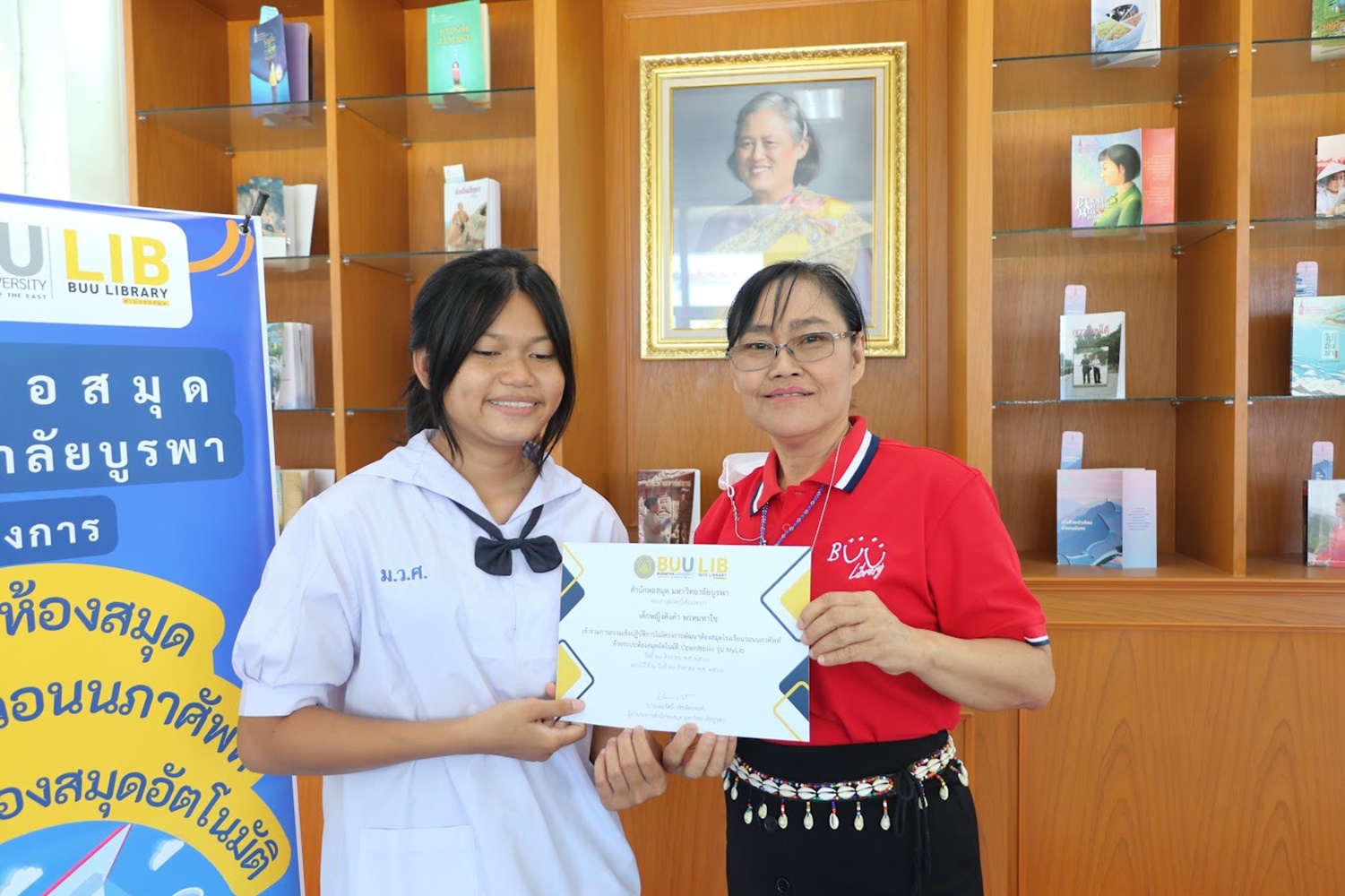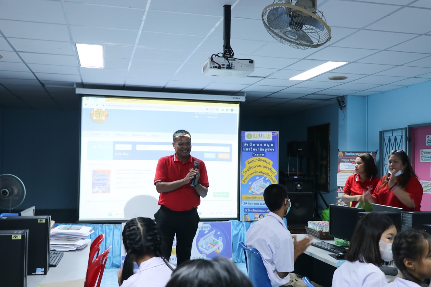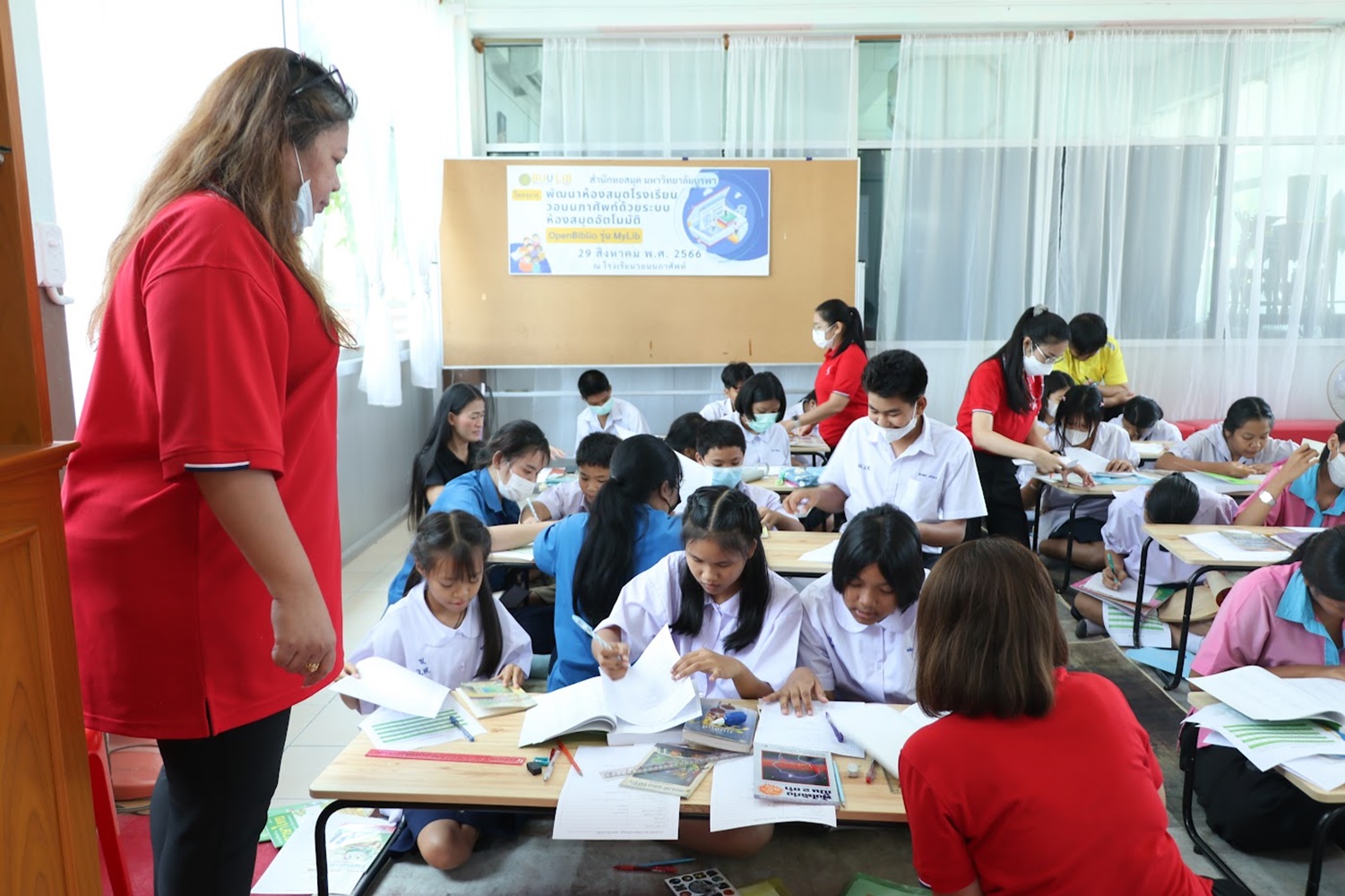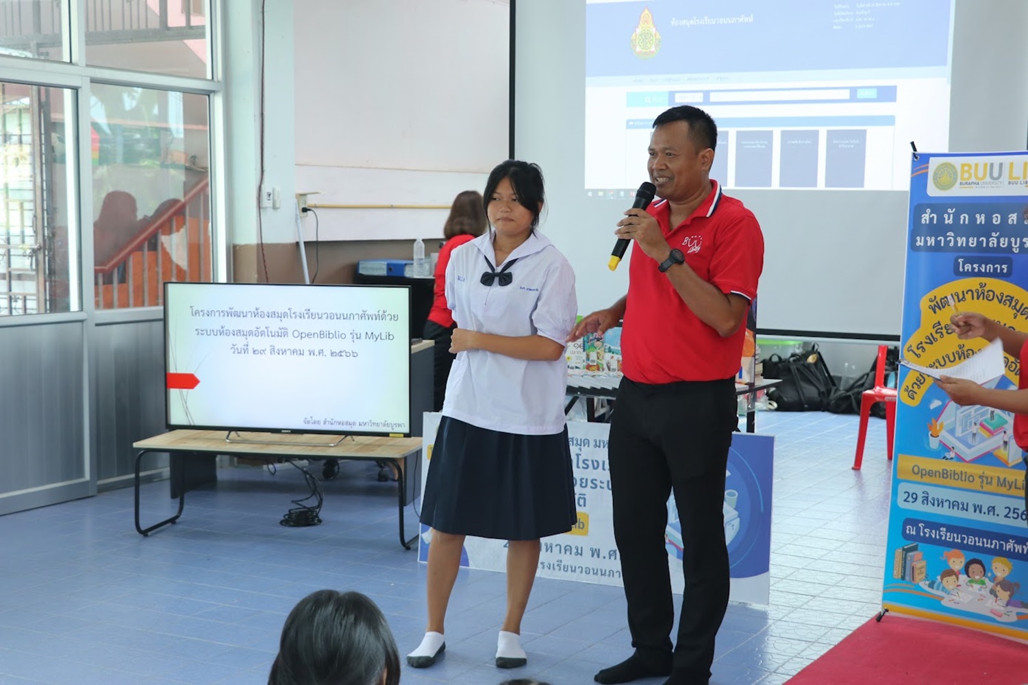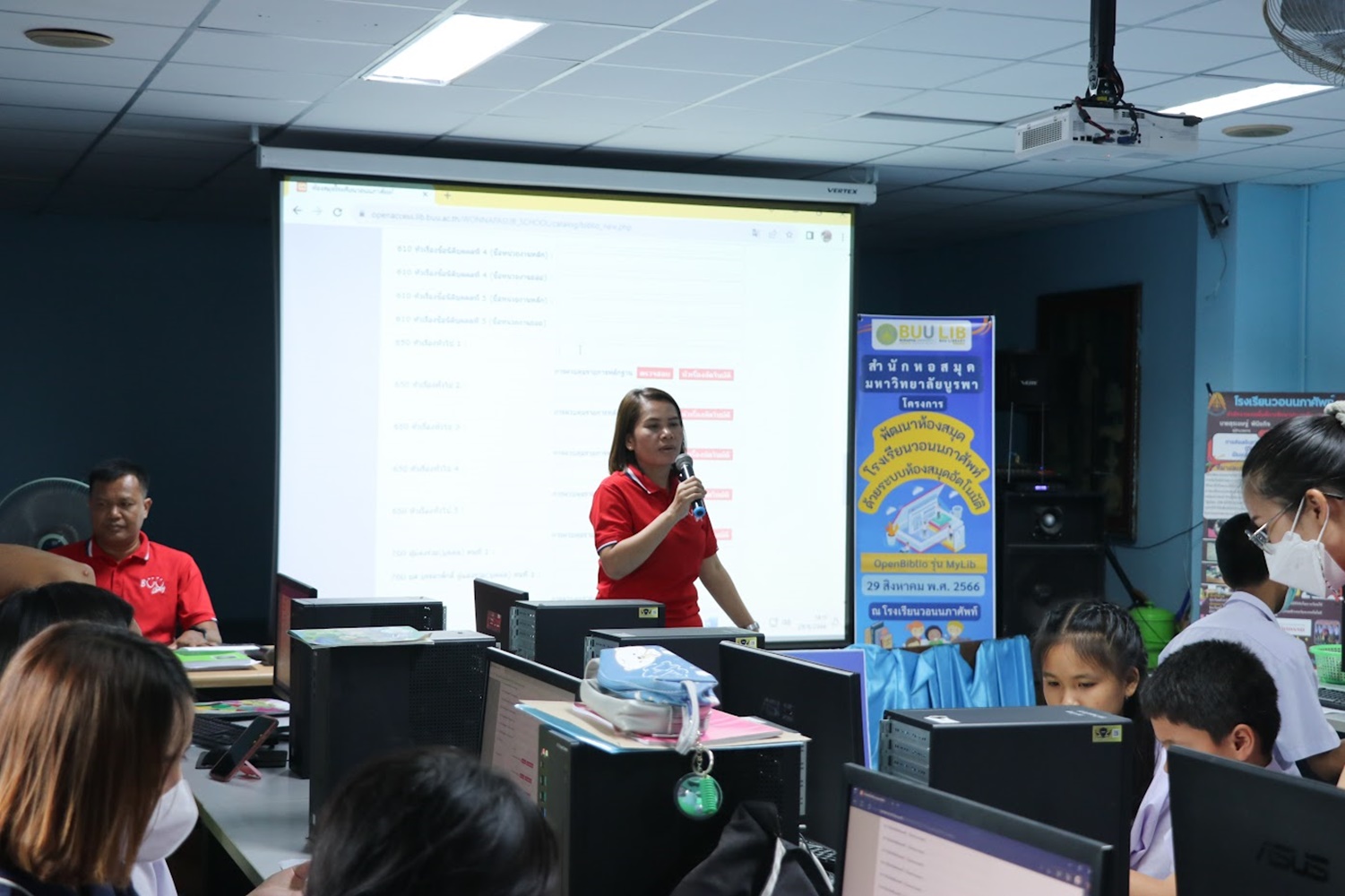 สำนักหอสมุด มหาวิทยาลัยบูรพา นำโดยอาจารย์เหมรัศมิ์ วชิรหัตถพงศ์ ผู้อำนวยการสำนักหอสมุด เป็นประธานกล่าวเปิดโครงการพัฒนาห้องสมุดโรงเรียนวอนนภาศัพท์ด้วยระบบห้องสมุดอัตโนมัติ OpenBiblio รุ่น MyLib เพื่อให้ผู้เข้าอบรมมีความรู้ความเข้าใจเกี่ยวกับการจัดการห้องสมุดโรงเรียน ระบบห้องสมุดอัตโนมัติ OpenBiblio รุ่น MyLib การลงรายการบรรณานุกรมหนังสือ และเพื่อเป็นแหล่งเรียนรู้ตลอดชีวิต เมื่อวันที่ 29 สิงหาคม 2566 ณ โรงเรียนวอนนภาศัพท์