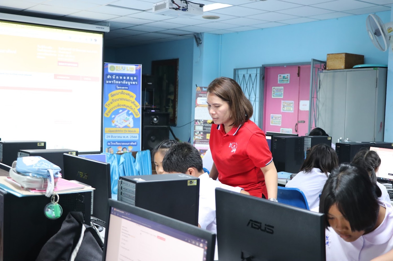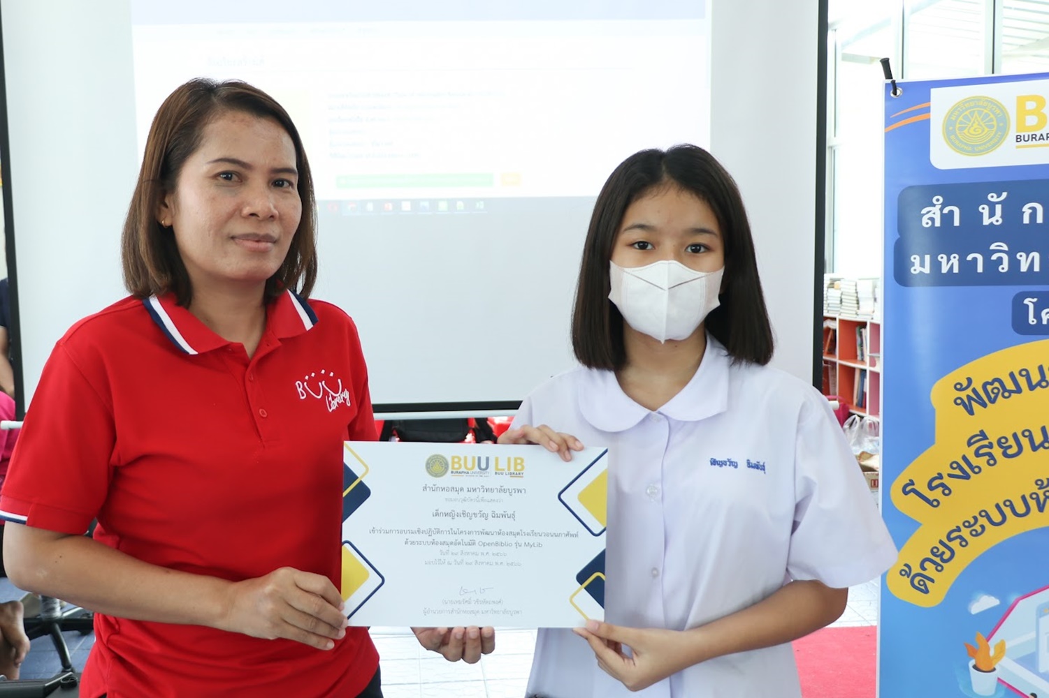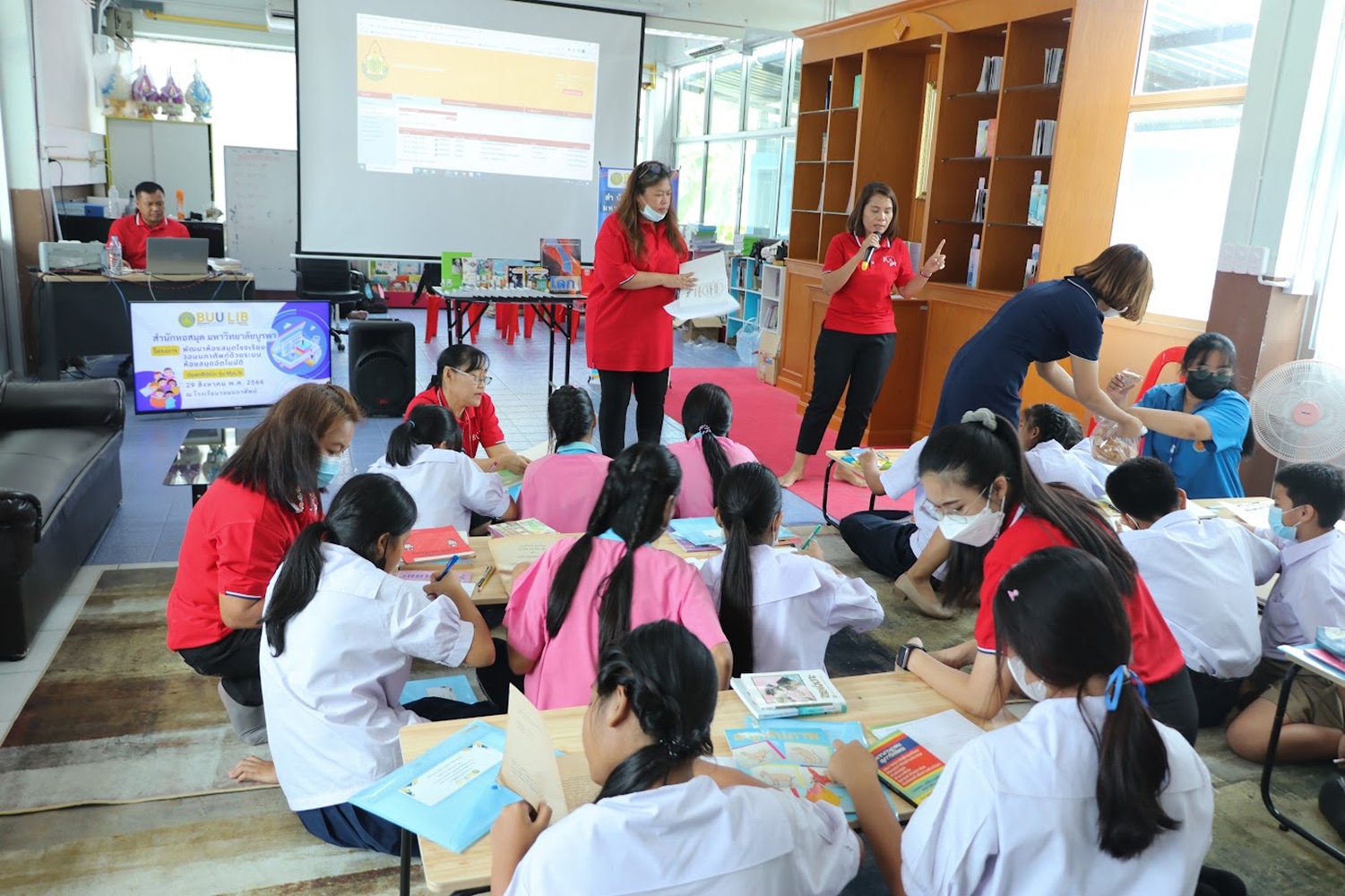 สำนักหอสมุด มหาวิทยาลัยบูรพา จัดอบรมเชิงปฏิบัติการ เรื่อง การจัดการห้องสมุดโรงเรียนวัดหลวงพรหมาวาส (พหลราษฎร์อุทิศ) ด้วยระบบห้องสมุดอัตโนมัติ OpenBiblio รุ่น MyLib โครงการด้านการนำความรู้ไปช่วยบริการชุมชน (Health Care/ เทคโนโลยีด้านต่าง ๆ): ภายใต้โครงการยกระดับเศรษฐกิจและสังคมรายตำบลแบบบูรณาการ (1 ตำบล 1 มหาวิทยาลัย: U2T) เมื่อวันที่ 4-5 พฤศจิกายน 2564 ณ โรงเรียนวัดหลวงพรหมาวาส (พหลราษฎร์อุทิศ) จังหวัดชลบุรี