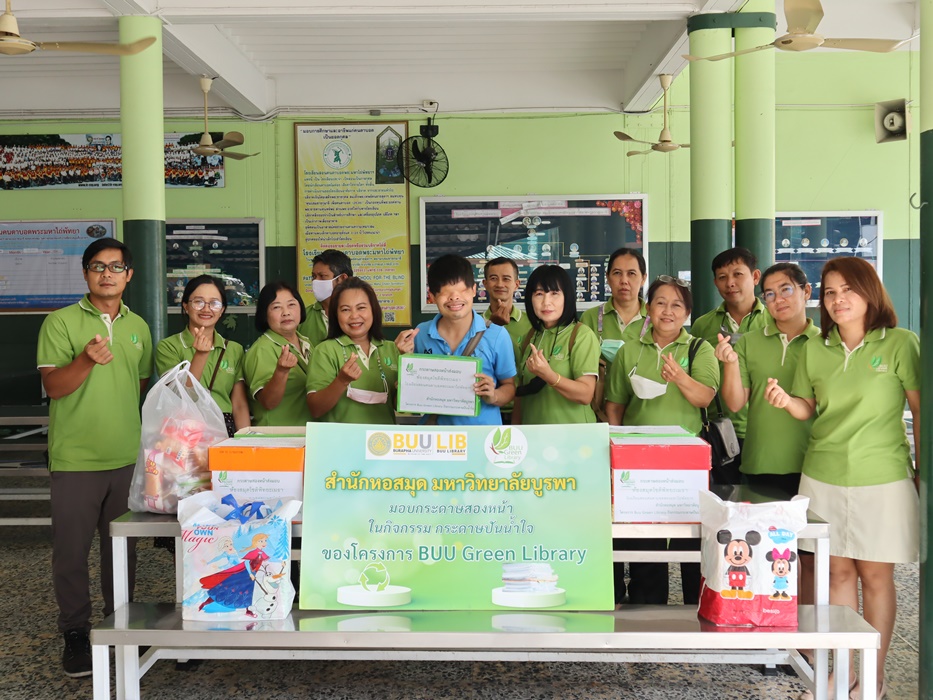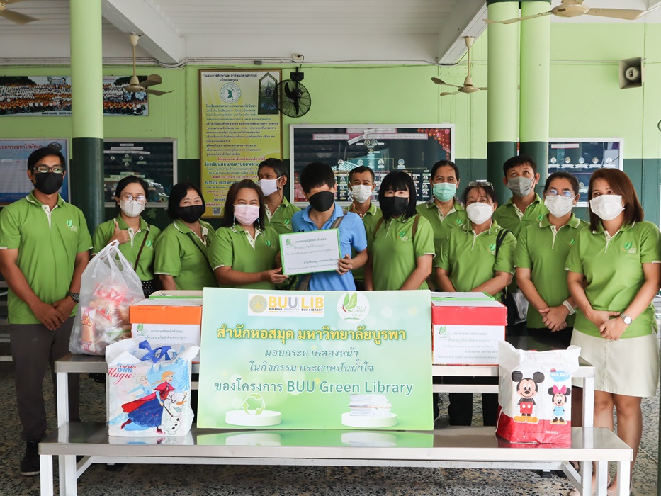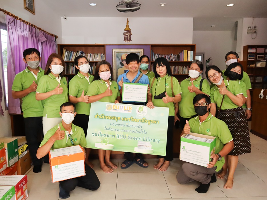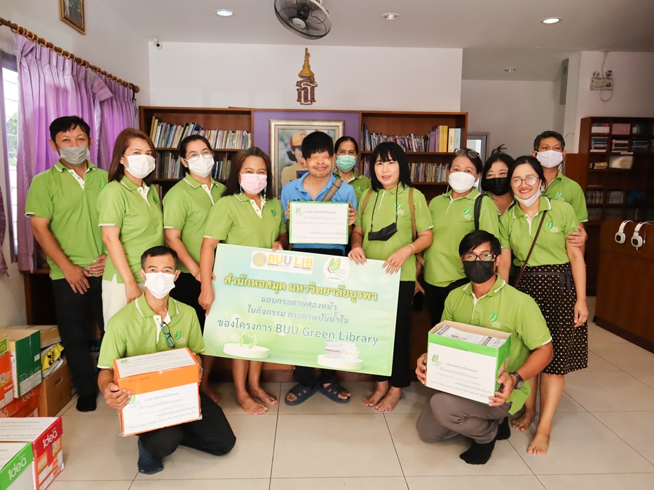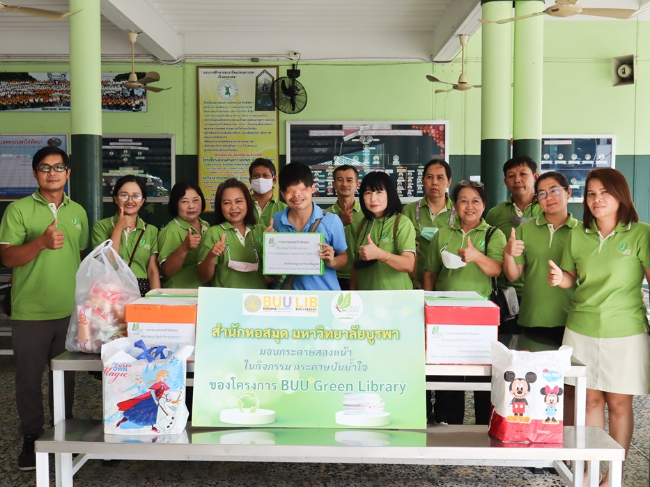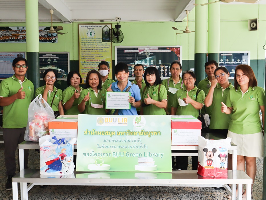 บุคลากรสำนักหอสมุด ร่วมกิจกรรม “กระดาษปันน้ำใจ” โดยมอบกระดาษ Reuse ที่ใช้แล้วสองหน้า ขนาด A4 ให้กับโรงเรียนสอนคนตาบอด พระมหาไถ่พัทยา จังหวัดชลบุรี เพื่อนำไปใช้ในการเรียนหนังสือของผู้พิการทางสายตา ในโครงการ BUU Green Library เมื่อวันที่ 21 มิถุนายน 2566