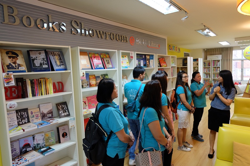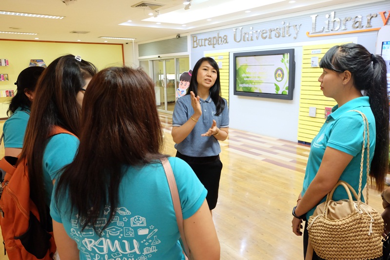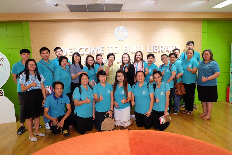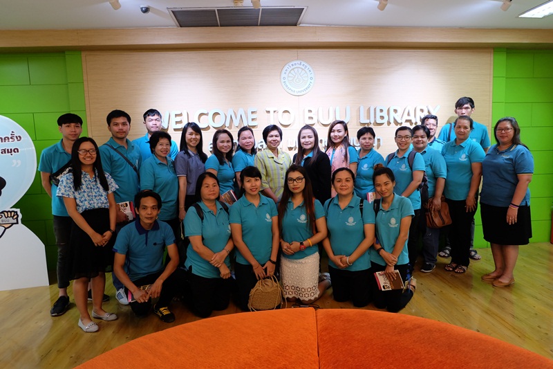 สำนักหอสมุด มหาวิทยาลัยบูรพา ให้การต้อนรับผู้บริหารและบุคลากร จากสำนักวิทยบริการและเทคโนโลยีสารสนเทศ มหาวิทยาลัยราชภัฏมหาสารคาม จำนวน 27 คน เข้าศึกษาดูงานการบริหารจัดการและการให้บริการสำนักหอสมุด โดยนางวันทนา กิติศรีวรพันธุ์ ผู้อำนวยการสำนักหอสมุด พร้อมด้วยบรรณารักษ์ให้การต้อนรับและนำชมสำนักหอสมุด เมื่อวันที่ 25 เมษายน 2561