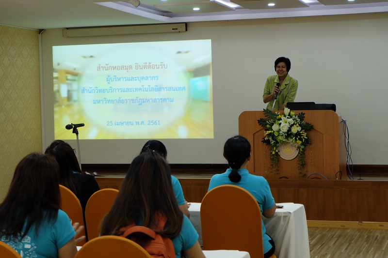 ผู้บริหารและบุคลากร จากสำนักวิทยบริการและเทคโนโลยีสารสนเทศ มหาวิทยาลัยราชภัฏมหาสารคาม ศึกษาดูงานสำนักหอสมุด